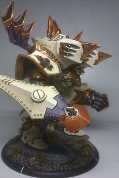 when you take a flash photo of a model and it makes it look a bit naff! I did quite a lot of highlighting of the gold plate with P3 Solid gold on most of the protruding gold leaf and embellishments as well as the gold rivets, this was augmented by a lot of black ink lining, the latter is absolutely painstaking, it takes ages and needs a really steady hand, but the delineation between two surfaces looks so much neater and makes the model stand out - definitely worth the time IMO.